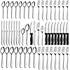 • 【72-Pieces Flatware Set For 12】Our 72 pieces silverware set contains 12 dinner spoons, 12 teaspoons, 12 dinner forks, 12 salad forks, 12 dinner knives and 12 extra steak knives, so you don't have to buy steak knives separately. The cutlery set is also an irreplaceable dining tool whether it is for daily use or for preparing dinners or parties