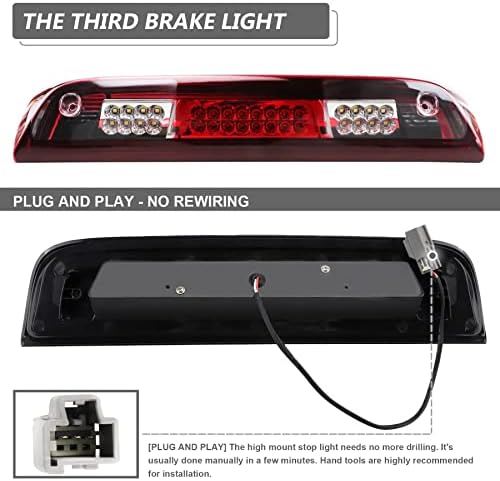 - 【EASY INSTALLATION】Plug and play design. The high mount stop light is no more drilling needed. For a better fit, it is recommended to use factory screws
