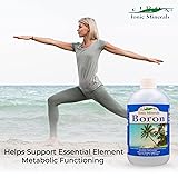 Boron Supplement: Provides essential boron to support whole body wellness Ionic Minerals: Bioavailable ionic minerals for optimal nutrient absorption Vegan Formula: Free of preservatives and additives 18 Fl Oz Bottle: Provides long-lasting supply of boron Easy to Take: Drops dissolve under water for convenient use