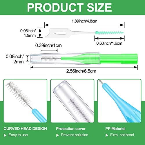 - Sufficient quantity: you will receive 250 pieces of interdental brushes in different colors and sizes, including 200 pieces of tooth floss picks in green color and 50 pieces of individually packaged interdental brushes, enough quantity and different types can meet your family needs