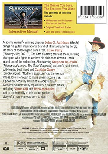 Region Free. “8 Seconds” is the true story of the meteoric rise and all-too-brief career of Lane Frost, the youngest national champion bull rider in history, Luke Perry stars as Lane, a shy but popular young bareback rodeo rider whose gutsy determination catapults him to stardom, As Lane gains a winning reputation, he meets and falls in love with Kellie, a spirited, beautiful young horsewoman, After a passionate courtship, the two young rodeo riders get married, Kellie looks after Lane and sacrifices her own freedom to be his devoted wife, but the pressures of Lane's career soon take their toll, Kellie is often left alone while Lane continues to ride the circuit with his longtime friends and competitors, including three-time rodeo champion Tuff Hedeman, Lane faces his ultimate challenge attempting to ride Red Rock, a dangerous bull known for fatally injuring his riders, Perry gives a fine performance in this gutsy and inspirational tale of a real-life rodeo hero, set to a swinging country-western soundtrack featuring Vince Gill and Brooks & Dunn, among others.