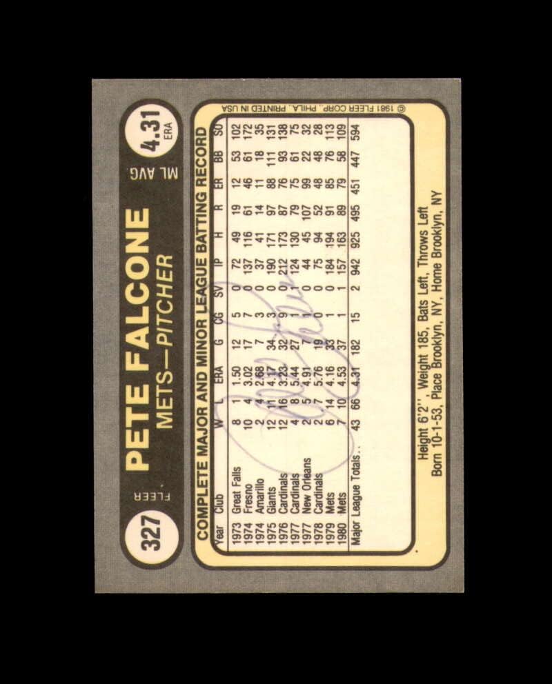 Pete Falcone Hand Signed 1981 Fleer New York Mets Autograph