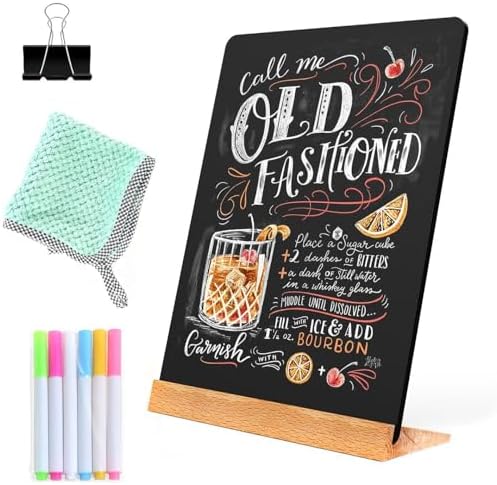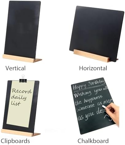 1 pack 8.7 x 12 Inch Tabletop Chalkboard With Wood Holder, Store Signs Chalkboard, Menu Chalkboard Stand, Message Board, Bar and Special Event Decorations, double-sided painting.This message blackboard is versatile. Suitable for restaurants, bars, hotels, home, office buildings... anywhere where a custom message informs and welcomes.The base is made of hard wood. The black board panel is made of black melamine MDF board. The melamine board thickness is 0.2 inch.Smooth surface, easily wipes clean with a cloth or eraser—eco-friendly and paper-saving. Dry erase is possible, wet clean from time to time gives best appearance.Sign can be easily disassembled for ease of storage when not in use. Work great in banquets too - to label dishes at a buffet or reception, or use to guide guests in a large event.