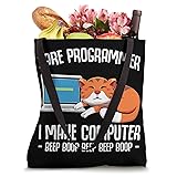 I Are Programmer I make Computer Beep Boop Beep Boop Beep funny quote featuring a cute orange kitten sitting on a laptop design. Network engineer router admin app developer programming professionals will love this for birthdays Christmas Valentine's Day Perfect present for family children friends family sister brother mom dad son daughter wife husband girlfriend boyfriend computer nerds geeks engineers cat or pet owners programmers software engineering technology enthusiasts IT Consultants coder hacker. 16” x 16” bag with two 14” long and 1” wide black cotton webbing strap handles. Made of a lightweight, spun polyester canvas-like fabric. All seams and stress points are double-stitched for durability, and the reinforced bottom flattens to fit more items and hold larger objects. Spot clean/dry clean only.
