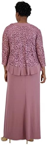 RM Richards Women 2 Piece Ruffled Lace Jacket Long Dress (20W, Dark Rose)