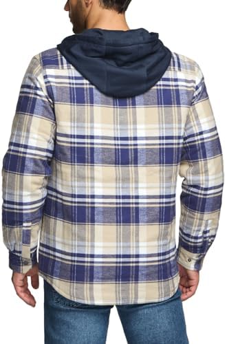 CQR Men's Quilted Lined Flannel Hooded Shirt Jacket, Soft Warm Long Sleeve Outdoor Cotton Plaid Shirt Jackets