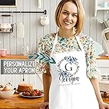 Personalized Kitchen Aprons Floral Initial Design w/Name Text - Customized Women Cooking Apron w/Pockets Custom Chef White Gifts for Baking Bbq Grill Funny Mujer Cocina Delantal C1, Standard