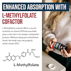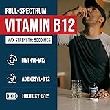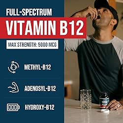 Full-Spectrum Vitamin B12 - Plus Methyl Folate Cofactor: Methylcobalamin, Adenosylcobalamin & Hydroxocobalamin are the 3 most beneficial forms of Vitamin B12, with each having different functions in the body. They are naturally occurring, biologically active, coenzyme forms of vitamin B12, the forms the body needs for cellular utilization. The formula also provides a full serving of L-Methylfolate, an essential cofactor of B12. Maximum Strength (5000 mcg of B12): Each serving contains a maximum strength dose of 5000 mcg of B12. It also delivers 1000 mcg of Methylfolate per serving. Methylcobalamin B12 - The Essential Form: Methyl B12 is the form needed to raise overall b12 status levels across the body. It is the most prevalent form within the bloodstream and is needed for carrying out the essential functions of vitamin B12. Adenosylcobalamin B12: The "Cellular Energy" Form: This is the form especially needed by the energy factories of the cells, the mitochondria. Adenosylcobalamin helps mitochondria burn food more efficiently for better energy production and metabolism. Hydroxocobalamin B12: The "Storage" Form: Shown to be stored and stays in the bloodstream longer and is universally distributed through the body to ensure long-lasting B12 levels. It also plays a role in detoxification processes within the body.