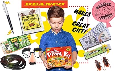 DEANCO Prank kit - 40 + Piece Set - Gags & Practical Joke Toys - Prank Stuff for April Fools - Ultimate Practical Jokes - Toys for Boys 8-10