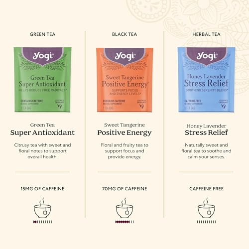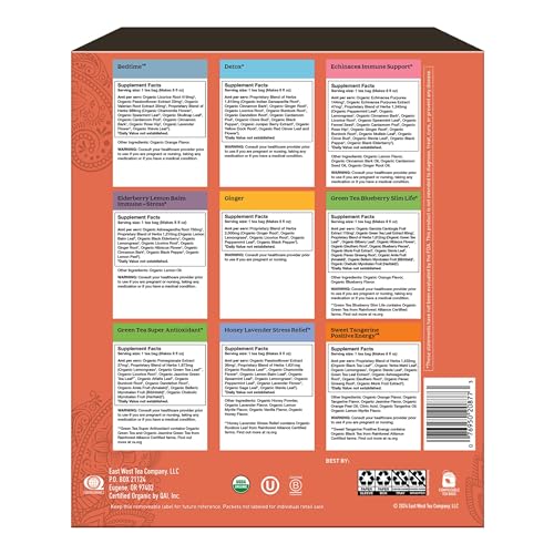 • Yogi Tea Gift Set: Includes Bedtime, DeTox, Echinacea, Elderberry Lemon Balm, Ginger, Green Tea Blueberry, Green Tea Antioxidant, Honey Lavender, and Sweet Tangerine