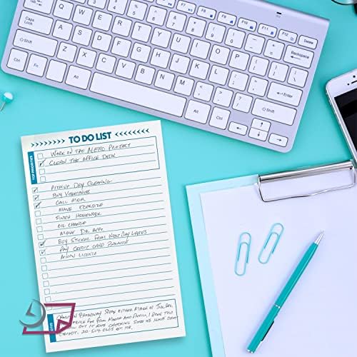 - Package includes two pads of 50 pages per pad, totaling to 100 sheets. These notepads offer a checklist, priority section and note section. Compact size measures 5.5” x 8.5” with high quality bright white 50# smooth paper with the lines printed in a green ink, backed with chipboard.