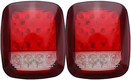 Universal 16 LED Trailer Tail Lights Red/White LED Stop Brake Turn Tail Signal Backup Reverse Brake Clearance Marker Light Replacement for Jeep JK CJ YJ Wrangler Truck Trailer Pickup RV 12V, 2Pack