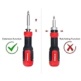 【Tool Saver】SHARDEN versatile 13 in 1 multi screwdriver includes a 1/4 inch nut driver and 12 common used screwdriver bits: T15/T20 Security Torx, 4mm/5mm/6mm Flathead, PH1/PH2/PH3 Philips, H4/H5 Hex, and SQ1/SQ2 Square. All the bits needed in one screw driver, reduce the number of tools you must carry 【Adjustable Design】This screw driver set Includes a 4.53" extension shaft which is made from alloy steel, great for working in hard-to-reach areas. Press the adjust ring and extend the length for easier access. The impact rated blade can be removed and attached to power tool, gives you more possibility 【Space Saver】Screwdriver multitool stores 12 changeable tips in the handle with an integrated bit holder. It's convenient to screw off the end cap and switch the bits. The screwdriver handle is 5.90" length, takes up very little space, fits into pocket, also suit for EDC, kitchen drawer, tool belt, tool box or backpack 【Humanized Design】Our screw driversets set has been professionally designed to maximize your repair capabilities. Cushion grip bi-material handle provides superb comfort, slip resistant and maximum torque. Magnetic bit holder ensures speedy and secure bit changes while the 1/4 bit holder applies to standard 1/4" bits 【Durability & Reliability】All bits are quality constructed with CRV Steel for longevity and durability. This multi-bit screwdriver set is covered by SHARDEN's lifetime warranty and 30 days money-back. If you have any issues, please don't hesitate to contact us, we will do our best to help every customer