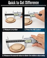 【ABS Setting】The Absolute Scale (ABS) feature allows you to track the origin point you set,even after shutoff.Turn it on again and the caliper can start measuring immediately,no need to zero.It is also possible to directly read the difference between two measured valuesIdeal for professional projects such as woodworking,professionals,industrial workshops,etc.Additionally,the callipers for measuring comes with a pressure-resistant,shock-resistant and drop-resistant box for storage and carrying. 【3 Units Conversion & Range】Our digital caliper has 3 size modes of mm, inches and fractions, and the measuring range: 0-6inch/0-150mm, accuracy: ±0.001inch/0.02mm, resolution: 0.0005inch/0.01mm. 【4 Measurements & Precision & Feeler Gauge】With two sets of jaws and a probe, this caliper can be used to measure external and internal diameter, depth and step. The measurement reading is stable and not shaky. 32 blade steel feeler gauge suitable for designers, engineers, mechanics to measure the thickness of tappet clearances, spark plugs gaps, piston ring gaps and other hard to reach places. 【IP54 Waterproof & Stainless Steel Material】: Stainless steel digital caliper with IP54 grade protection, sturdy frame and a lockable head, which can resist water, dust, oil, and rust. The shell is made of metal with silver painted to prevent corrosion, allowing you to slide calipers smoothly!It is very suitable for engineers, carpenters, households, professionals, etc. 【ZERO Setting & Auto Shut Off & LCD】 Thumb roller and slider clamp screw enables a high accuracy. You can also reset it to zero with the "zero" button for measuring the next section. If there is no operation within few minutes, the digital caliper will automatically shut down and the LCD display will turn off to save power. And when the thumb wheel moves, the display screen restores power.3 batteries are provided: one installed and other two as spare batteries.