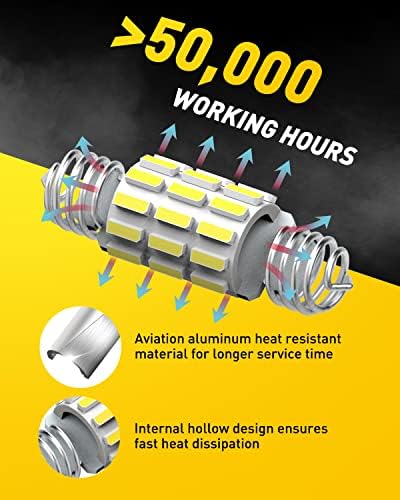 - 【Long Life】The DE3022 6418 C5W license plate bulb white adopts an all-aluminum body with a perfect hollow design, which is more conducive to efficient heat dissipation, ensuring a safe temperature range and consistent brightness. 31mm 36mm LED festoon map light bulbs extend life to 50,000 hours