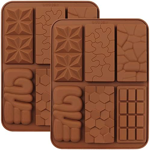 C-CO 6 in 1 Silicone Break Apart Chocolate Bar Mold, Silicone Molds for Wax Melts Non Stick Homemade Protein and Energy Bar Mould, Pack of 2