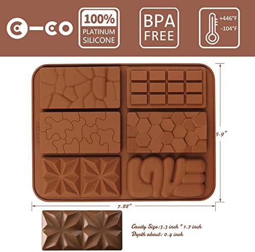 - 🍫 HIGH-QUALITY BAKEWARE - C-CO's flexible thick chocolate candy bar molds silicone are BPA free, designed stronger, with more durable and thick premium materials that last longer than other break apart chocolate bar molds. Heat resistant from -104℉ to +446℉, these silicone bar molds can be allowed for using in the freezer, oven and micro-wave, won't change shape or have odd smell afterwards. If you have any problem with our silicon chocolate candy molds, please contact us