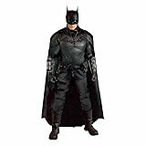 - The Batman is outfitted in a screen-accurate armored Batsuit with chest insignia. The costume features an integrated posing wire in the cape, utility belt, a thigh pouch, and two vambrace. Batman comes complete with four head portraits including an unmasked Bruce Wayne portrait, all featuring the likeness of actor Robert Pattinson. Equipped with multiple Batarangs, sticky bombs, handcuffs, grapple launcher, and smoke bombs, Batman fights crime in the wet and grimy streets of Gotham. A young Bruce Wayne struggles to balance rage with righteousness as a sadistic Riddler leaves behind a trail of cryptic clues. As Batman, Wayne ventures into Gotham’s underworld to unmask the culprit and bring justice to the abuse of power and corruption that has long plagued his city.