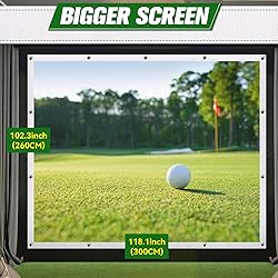 Superior Durability: Experience the durability of our aikeec golf impact screen, engineered with a 5mm thick polyester that stands up to the force of real golf balls. With the confidence to handle balls traveling at over 110- 200mph, our golf screen is tested to withstand an impressive 100,000 strokes, ensuring long-lasting performance. Enhanced Stability and Quiet Impact: Our aikeec golf simulator impact screen features a 7mm reinforced edge and a 5mm thick polyester construction, ensuring not only unmatched stability but also a quiet impact experience. The high resilience of the material significantly reduces noise upon ball contact, allowing for a more peaceful practice session and preserving the tranquility of your surroundings. This attention to detail makes it perfect for home use, without disturbing others. Easy Setup: Our impact screen golf simulator features 32 to 46 grommets around the perimeter, allowing for versatile installation with bungee cords, ropes, or carabiners. For a softer ball impact, consider reducing the number of grommets used for attachment. Vivid and Immersive Visuals: Step into the game with our high-definition golf hitting screen. The crisp visuals and true-to-life impact feedback provide an immersive experience, perfect for mastering your swing and enhancing your on-course performance. Universal Compatibility: Seamlessly integrate our golf simulator screen with any golf simulator system for versatile performance, making it the perfect addition to your home practice setup, suitable for golfers of all skill levels.