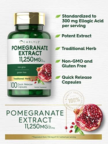 Carlyle Pomegranate Extract | 11250mg | 100 Capsules | Non-GMO, Gluten Free Supplement | Traditional Herb