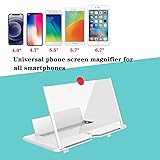 Phone Screen Magnifier, Screen Amplifier 3D HD Screen Projector with Foldable Stand, Phone Screen Magnifier for Watching Movies, Videos, Games and Reading, Compatible with All Phones (White)
