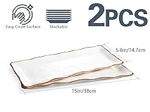 【Stylish Fluted Platters】 Modern and minimalist design makes a difference, with fluted edges and glossy surface that make this platter set stand out. The brown glazed rim adds a sophisticated look and goes well with your tableware. 【Large Size Serving Trays Set】 Including 2 pcs serving tray, each measures 15 inches, great for serving fruit, dessert, snacks, appetizers, side dishes, and salad, suitable for home and professional restaurant use. 【Solid & Sturdy Ceramic】 Platters are Made from high-quality porcelain, which is LEAD and CADMIUM FREE and will not react with food acids. They are fired at high temperatures, making it MICROWAVE, DISHWASHER and OVEN SAFE to 450F. 【Easy to Clean】 A smooth glaze prevents stains from remaining; non-porous, non-stick, stain-resistant surfaces allow easy clean-up. Organizing will be a snap, as its stackable design helps save space in the kitchen. 【Best Option for Gift】 Delicate box packaging makes it an ideal gift for special days like Christmas, Mother’s Day, Birthdays, and Anniversaries. Also Great for relatives or friends who are cooking lovers.