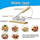 - Heavy Duty Nutcracker for cracking nuts,pecan, hazelnuts, almonds, walnut, Brazil nuts and more. However, it DOES NOT work for black walnut,macadamia and other similar hard shell nuts.This nut cracker is designed for cracking soft shell nuts, faster, better and easier than any other nut cracker tool. It is fully adjustable and easy to operate. After cracking the walnut skin, the walnut can appear completed, avoiding unnecessary waste. Enjoy the moment by shelling the nuts by yourself.The solid hardwood base of the nut cracker can not only keep the nut cracker stable when in use, but also successfully eliminate the damage caused by the metal construction on the table while it’s as thick as a chopping board. The wooden handle also reduces pain and pressure to the hands.Features:Heavy duty metal construction with attractive wooden base and handle grip, solid and durable.Adopting the leverage principle design, cracks nuts faster and easier, saving time and effort.The card position can be adjusted for different sized nuts.Mounted on beautiful hardwood base, easy to place on desktop and ensures stable operation.Perfect for cracking walnut, nuts, pecan, hazelnuts, Brazil nuts and other soft shell nuts.