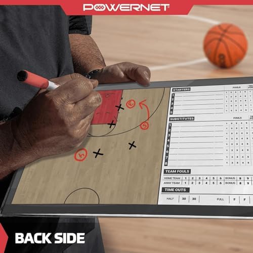 PowerNet Magnetic Coaching Clipboard, Basketball Whiteboard with Line Up Chart, Double Sided Dry Erase Board, Weatherproof Coach Clipboard, Includes 2 Dry Erase Markers