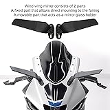 - Feature: 1. Fitment: It's a motorcycle rearview mirror that converts into an aerodynamic wing, designed for super sports bikes, replacement for Ninja: 250 300 H2 H4, etc. 2. Mirror Structure: Wind wing mirror consists of a fixed part that allows direct mounting to the fairing, and a movable part that acts as a mirror glass holder. 3. Rotating Wing Mirror: Thanks to a swivel system, with a simple movement, the two parts are aligned, and in the closed position the mirror becomes an aerodynamic foil. 4. Specially Designed: While the mirror glass mounts are always the same, the fixation components are specifically designed for super sports bikes to find the best solution to match the relative aerodynamic results. 5. Characteristic: Motorcycle rearview wind mirror is made from billet aluminum and has a convex glass surface for wider viewing angles. Specification: Item Type: Motorcycle Rearview Mirror Material: Aluminum Alloy + Rubber Fitment: Universal for motorcycle supersport bikes Replacement for Ninja: 250 300 H2 H4 Replacement for Ninja: 400 2018-2022 Replacement for Ninja: 650 2018-2022 Replacement for ZX10R ZX6R ZX-636 2019-2022 Package List: 2 x Rearview Mirror 2 x Cushion Pad 6 x Screw 1 x Wrench