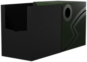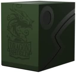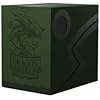 Forest green exterior with a black interior. The perfect MTG commander deck box! The Dragon Shield Double Shell is a sturdy deck box with two layers of protection all the way around. The lid wraps around the box for a secure closure or can be set to stay open for easy access to cards. Cube Shells will fit inside. The Double Shell fits inside large Nest boxes and Magic Carpets. Each Double Shell has a writing field on top for personalization and comes with a divider. The Double Shell holds up to 150 single sleeved cards or 120 double-sleeved cards or 100 Sealable double-sleeved cards.