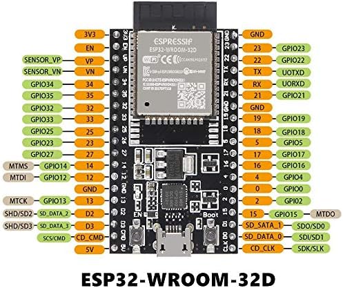 - ESP32-DevKitC board with latest ESP-WROOM-32D module, the chip ESP32-D0WD is designed to be scalable and adaptive.