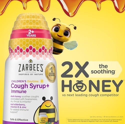 - SAFE & EFFECTIVE: 4-fluid ounces of Zarbee's Children's Daytime Honey Cough Syrup + Immune Support in a natural mixed berry flavor for kids aged 2+ helps calm & comfort dry, irritated throats, & supports your child's immune system