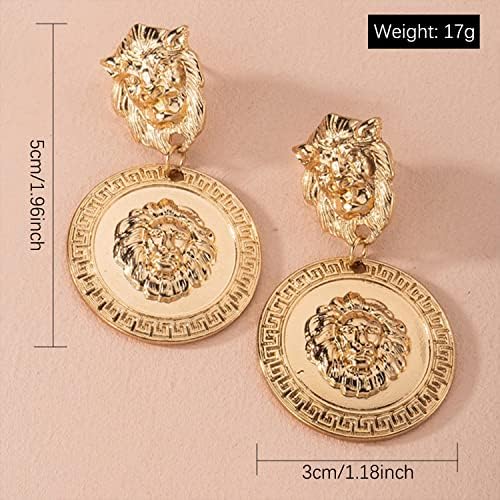 KaFu Statement Lion Head Earrings Big Coin Gold Circle Baroque Animal Dangle Earrings Vintage 80's Women Girls Dainty Gift