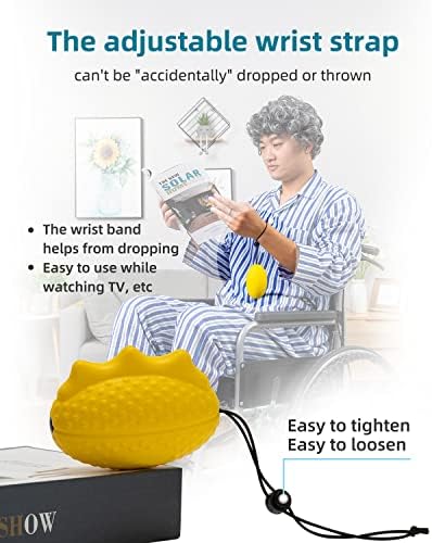 - ▶ The Adjustable Wrist Strap: The sliding clasp on the hand exercisers for therapy is easy to adjust to your own wrist size.the string on the grip strength trainer has prevented that squeeze ball can be "accidentally" dropped or thrown. you can do some exercises then rest and have the hand strengthening equipment just hang down and not roll away.