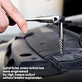 Made of high hardness chrome-molybdenum steel and high-speed steel for superior durability. Engineered for high torque output without expansion to prevent breaking or jamming. All the screw extractors are precision engineered to easily remove seized, broken studs, bolts, socket screws, and fittings. The aggressive left-hand design creates extra gripping power. Easy-out style spiral flutes embed themselves to increase grip as resistance increases. Drill bit guide and long extractor pins for hard-to-reach and tight areas. Fit where others won't and can't. Heavy-duty blow-molded case lets all the screw removers stay organized and take your set on the go.