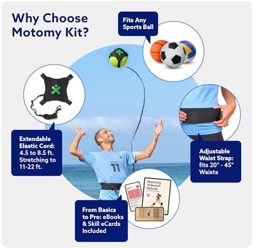 MOTOMY™ Volleyball Training Equipment Aid ‘VolleyPal’ – Solo Rebounder Trainer for Serve, Spike, Set & Pass; Indoor and Outdoor Practice Gear Gifts for Beginners & Experts