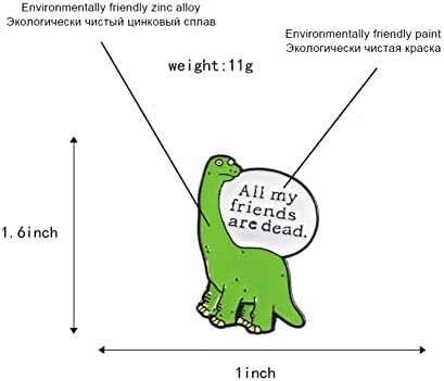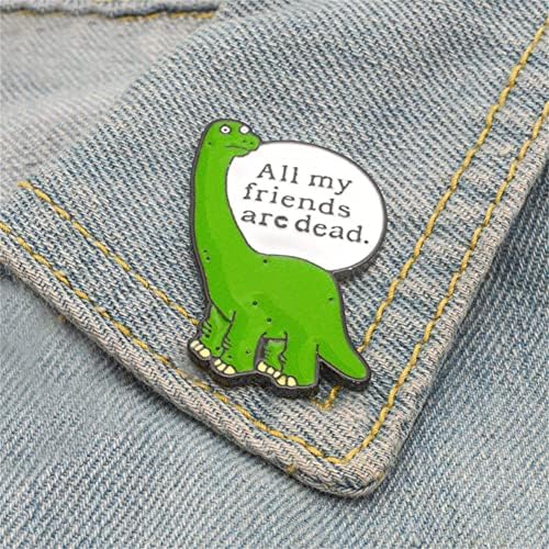 Cartoon Dinosaur Brooch Green Little Dinosaur Badges Letter All My Friends Are Dead Brooch Enamel Pins Metal Broches for Women Badge Pines Backpack Denim Jacket Pin Women Girls