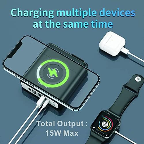 - ✅【Fast Charging】Users are free to choose multi interface fast charging , USB-C is PD20W output & input, USB-A is QC3.0 18W Quick Charge and Wireless Charging is 15W. This wireless portable power bank charger switches its power supply automatically between 15W/10W/7.5W/5W to suit your electronic devices.