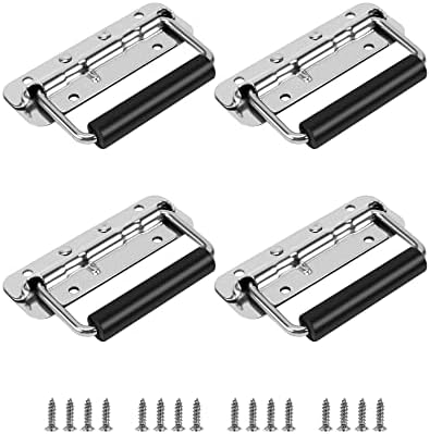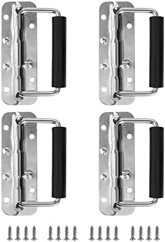 QWORK Case Handles, 4 Pack 122mm 304 Stainless Steel Spring Loaded Handle with Rubber Grip, for Cabinet Garage