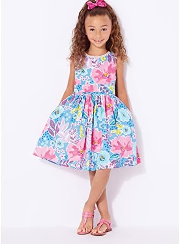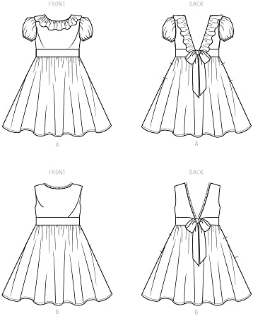 From dresses and skirts to blouses and jackets, New Look patterns are an easy way to customize your wardrobe with pieces that are perfectly personalized for you. Our patterns are cute and comfortable, and are proudly printed in the USA to ensure quality and consistency. Below-the-knee dress patterns for girls have full gathered skirt and short sleeve or sleeveless options while lined bodice has back V-neck trimmed with contrast fabric ruffle or purchased trim; sash attaches at side seams and creates a bow in the back Girl's and toddlers dress sewing pattern packet comes with sewing templates, fabric recommendations, pattern pieces, sizing guides, and instructions for (2) dress variations. These clothing patterns for girls and toddlers can be made to fit sizes 1/2, 1, 2, 3, 4, 5, 6, 7, and 8.