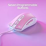 HyperX Pulsefire Core - RGB Gaming Mouse, Software Controlled RGB Light Effects & Macro Customization, Pixart 3327 Sensor up to 6,200DPI, 7 Programmable Buttons, Mouse Weight 87g - White/Pink