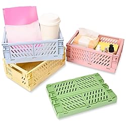 - ✔ Features: - Size: S: 5.9" x 3.9" x 2.2" (Length x Width x Height) - Material: PP - Optional Color: Pink, Blue, Green, Mixed. - Wide Usage: The folding plastic crates can be used to hold your vegetables, fruits, cosmetics, notebooks and other daily stuff. They can be placed in the kitchen, bathroom, living room and bedroom. - Exquisite Workmanship: The smooth edge is not easy to hurt your hands. The hollowed design makes you easily see the items in the folding plastic storage bins. - Portable: The handle design of mini plastic folding crates makes it easy to take and carry, you can fold it up in your suitcase when traveling. - Save Time: You can classify and store your items according to the different colors of the crate, so you can narrow the range when looking for items and find the items you need quickly. ✔ Package Including: 4 * Mini Plastic Baskets (Mixed)