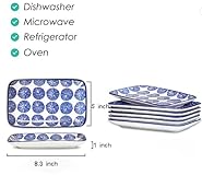 VERSATILE SMALL RECTANGULAR PLATES - Each plate measures 8.3” L x 5” W x 1” H with curved sides which can keep the food well without slipping out. Perfect size for food portion control and serving a variety of food such as salad, Sushi, appetizers, sandwiches, fruits, cookies, cupcakes, etc. VIBRANT DESIGN – The rich blue colors and patterns make them unique and eye-catch in any style. They brighten up your table and showcase the food well even making you cheerful. Making a charming addition to your countertop or table. HEALTHY AND SAFETY - Made of premium material that offers a sturdiness with a medium weight and won't absorb odor or bacteria, Unleaded, and Non-toxic. Safe for Microwave, Oven, Fridge, and Dishwasher. EASY TO CLEAN AND STACK – Have a smooth surface that is pretty resistant to scratches and make them clean up easily by hand or dishwasher without fading color for long-term use. The wide bottom and rectangular shape make them very stable as well as easy to stack in the cupboard. PERFECT PRESENTS AND SATISFACTORY SERVICE - An ideal Present for birthdays, weddings, Christmas, Thanksgiving, etc. And also widely applicated to tea parties, catering, outdoor picnics, BBQ, and dinner parties. If you have any problem with our plates after receiving them, just contact us! We promise that we will make every effort to solve it.