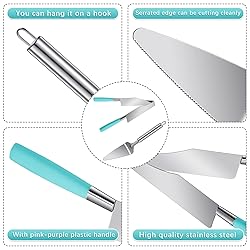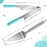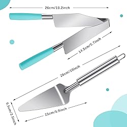 - Features: Adorable present supplies: Our blue cake cutter and server are ideal for you to send to your family members, friends, colleagues and more who love cakes, on Christmas, Halloween, Valentine's Day and other festivals. They will feel your concern and love, and your relationship will be improved. Charming blue handle: The handle of cake cutting tool is blue, matching silver end, classical and charming, can be compatible with diverse kinds of tableware, bringing you a nice and different experience. Specifications: Material: Cake slicer cutter: stainless steel, plastic Cake server: stainless steel Color: Cake slicer cutter: silver with blue handle Cake server: silver Sizes: Cake slicer cutter: approx. 24.5 x 4.5 cm/ 9.65 x 1.77 inches Cake server: approx. 26.7 x 15.2 x 6.4 cm/ 10.51 x 5.98 x 2.52 inches Quantity: 2 pieces Package includes: 1 x Cake slicer cutter 1 x Cake server Notes: Manual measurement, please allow slight errors on size. The color may exist a slight difference due to different screen displays. Please use with care to keep away from scratches.