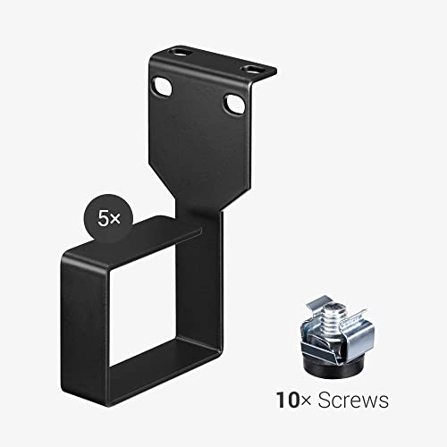 Keep network cables and cords efficiently managed with a set of cable management D-ring hooks by kwmobile. The metal clips are perfect for getting your network setup perfectly organized to your needs.INDIVIDUAL BRACKETSIndividual brackets offer more flexibility in comparison to single cable management bars which are fixed in place. Select where each individual bracket is best placed in order to keep your cables and wires as neat as possible.FOR PROFILE RAILSThese cable management brackets are suitable for profile rails. Screw in place using the provided screws.STRONG STEELMade using durable steel to ensure these cable brackets stand the test of time.SPECIFICATIONSMeasurements per bracket: 1 3/4" x 4" x 2 3/8" (4.4 cm x 10.1 cm x 6.0 cm)Materials: Powder Coated SteelSCOPE OF DELIVERY5x Cable Management Brackets10x Screws