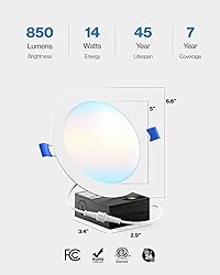 6 Inch Slim LED Downlight with Junction Box and Smooth Trim IC RATED - Sunco's slim downlights are IC rated, meaning they are thermally protected and won’t overheat or ignite surrounding insulation in the roof or overhead joist space. Both the light and its junction box are safe for direct contact with ceiling insulation. SIMPLE INSTALL - Our LED slim downlights come equipped with a junction box which means they do not need a can. Spring-loaded brackets fit any ceiling type: double drywall, single drywall, and soffit. DIMMABLE - Seamless dimming capabilities (10%-100%) to fit any mood or décor. Our slim downlights give off sunlight-like quality for true color rendering. SUNCO BENEFITS - 7 Year Protection! Sunco is proudly based in the USA, offering quality products at affordable prices backed by industry-leading warranties and knowledgeable support specialists.