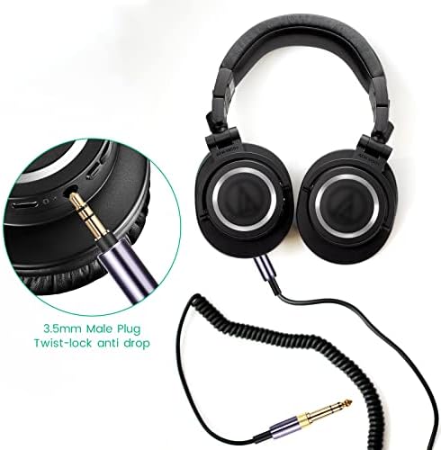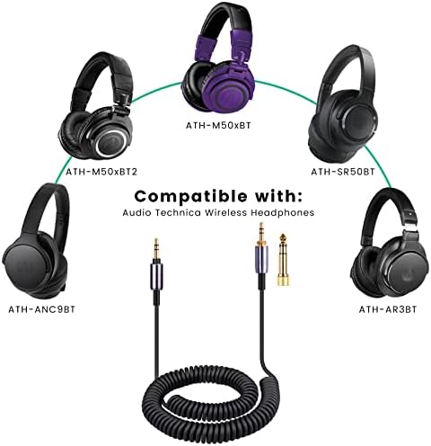 ATH-M50xBT Cable, Coiled Aux Cord Replacement for Audio Technica ATH-M50xBT2, ATH-SR50BT Wireless Headphones, 3.5mm(1/8") Extension Wire with 6.35mm(1/4") Adapter, 14ft