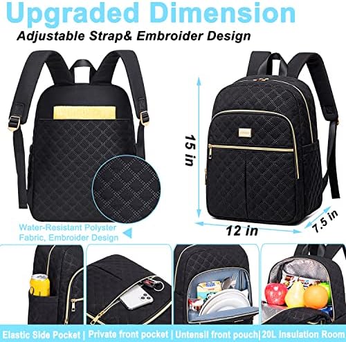 • Céntrese en los detalles de la mochila enfriadora de almuerzo. Diseño de mochila para mujer con material de fibra de poliéster bordado, diseñado principalmente para mujeres, mochila loncheras para mujer cubre una membrana molecular densa, fácil de usar y a la moda; diseño de hebilla con cremallera dorada, anticorrosiva y suave, no solo tiene un buen rendimiento Fácil de usar, pero también tiene un buen aspecto; con asa y hombro acolchados Tirantes, diseño de costura reforzado, mochila para lonchera con múltiples bolsillos. Adecuada como mochila multiusos