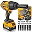 Alloyman 1/2 pulgada Llave de Impacto Inalámbrica, (750 N.m) Pistola de Impacto Eléctrico de Alto Torque 555 Ft-lbs, 20V Impact Driver de Poder, Motor Sin Escobillas 2000 RPM, 6 Sockets, 3 Barras de Extensión, Batería de 4.0AH Li-ion
