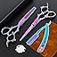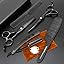 - [Contenido del paquete] 2 tijeras negras (1*tijeras planas, 1*tijeras de adelgazamiento), rasurador negro (El rasurador contiene cuchillas, por favor use con cuidado), peine de manzana negro, peine bifold negro, tornillo de ajuste, paño de limpieza, bolsa de cuero.